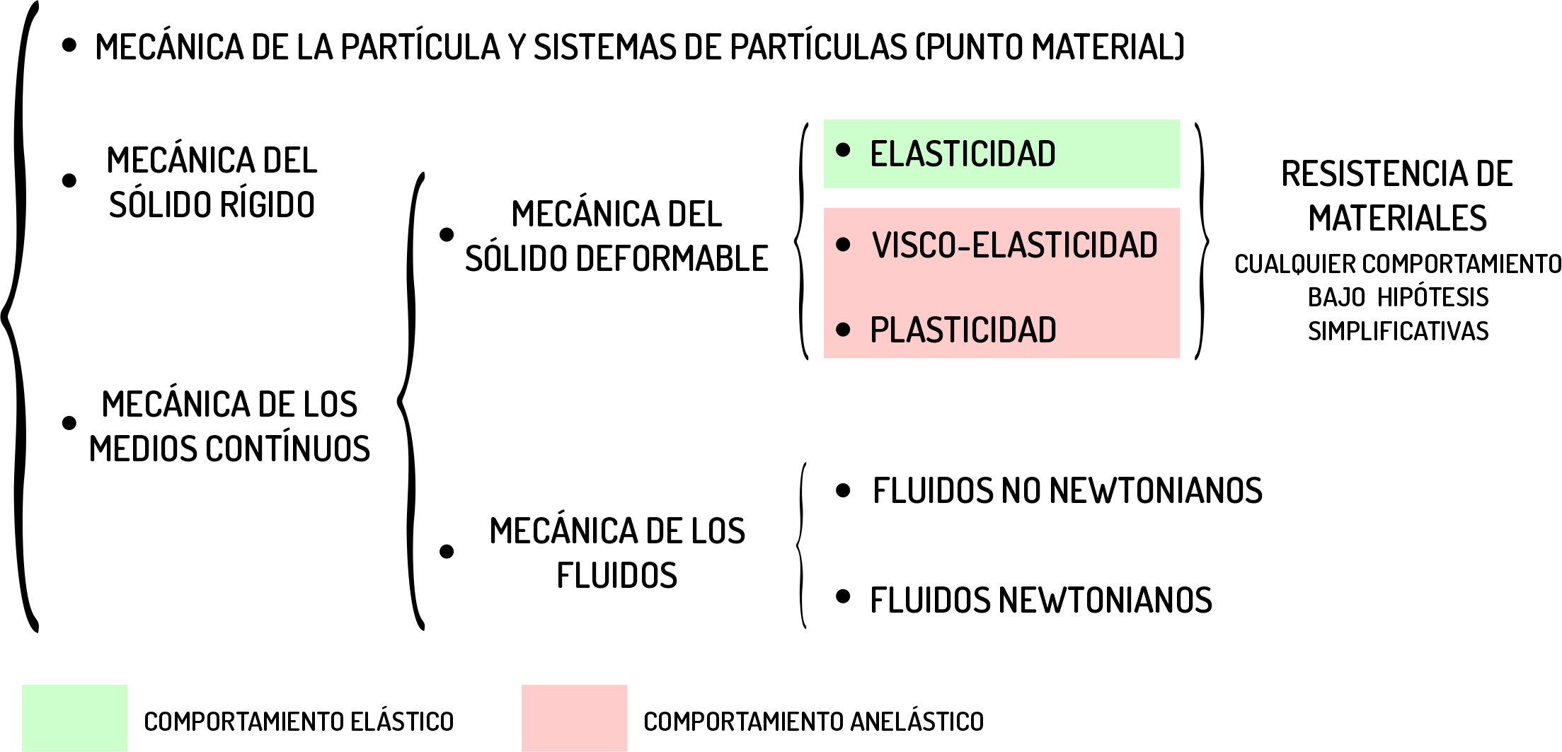 Aquí entramos en la clasificación más profunda, donde proliferan más ramas de la mecánica, debido a la dificultad de abordar diferentes escalas y condiciones al modelado de los elementos físicos que se pueden estudiar. El profesor L. Ortiz Berrocal establece el siguiente esquema general: