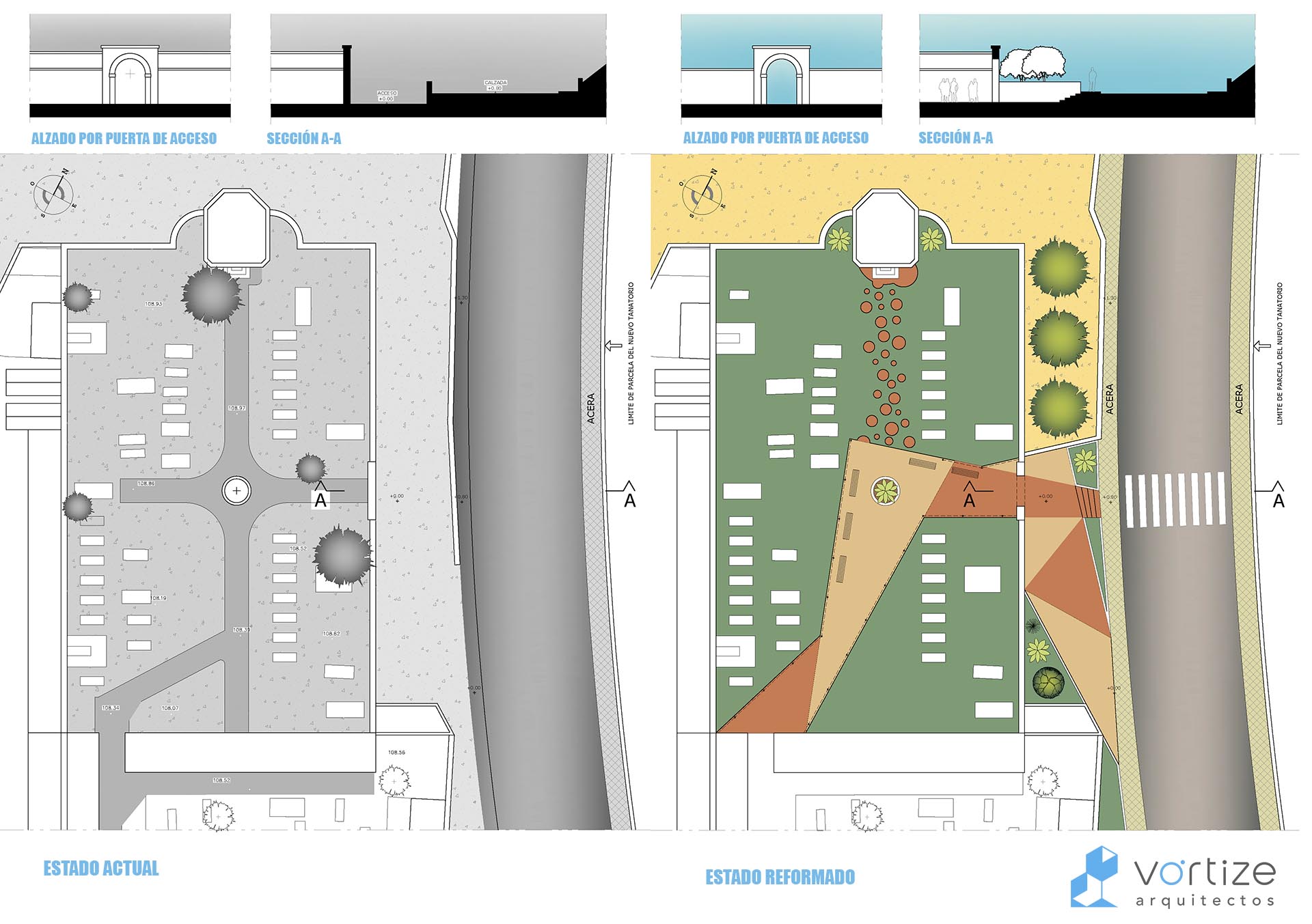 La intervención  pretende la reapertura del acceso noreste para la entrada de público al cementerio de San José desde su extremo Norte a través del cementerio inglés. Para ello, se proyectan una serie de obras de mejora y adecuación del sector afectado por las obras para permitir el tránsito peatonal y poner en valor el sector en actual estado de semi abandono. Por otro lado, se proyectan las obras de enlace y urbanización para dotar al futuro acceso con solados, evacuación de pluviales y las dotaciones urbanas necesarias para poder ser utilizado desde la urbanización circundante en su linde este.