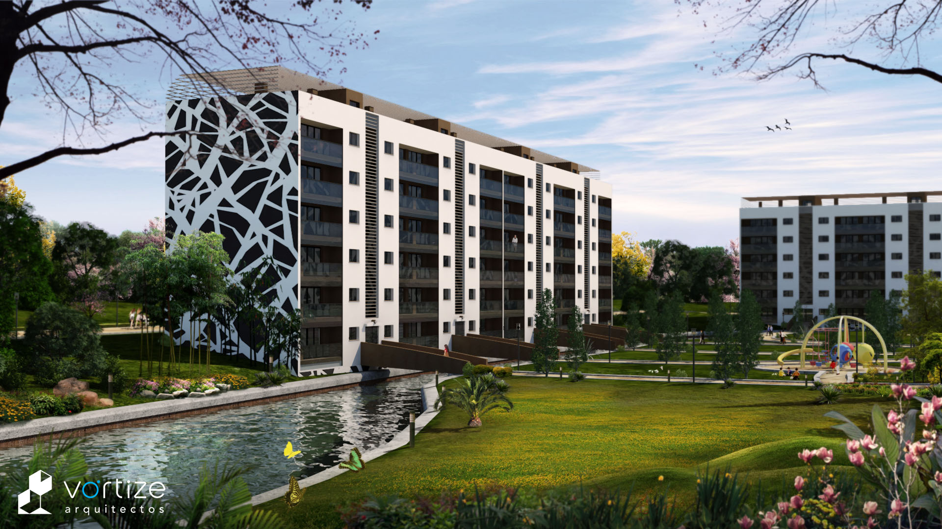 Master plan y conceptualización de barriada de expansión para provisión de viviendas en nuevo asentamiento en Hainan, China. La propuesta para el concurso define y esboza varios modelos de vivienda en edificación plurifamiliar moderna para trabajadores que acuden a la ciudad desde un entorno rural.