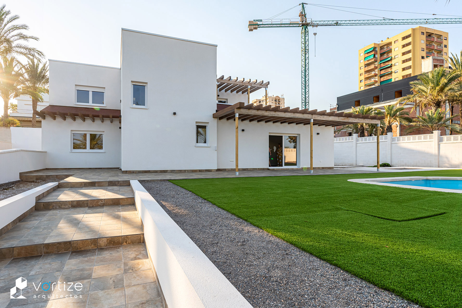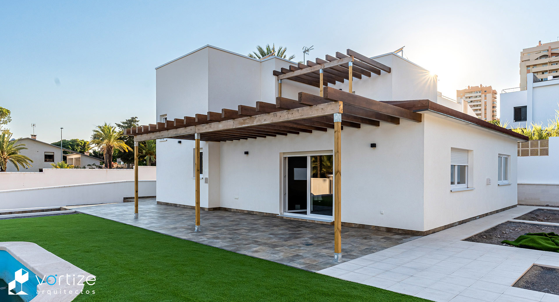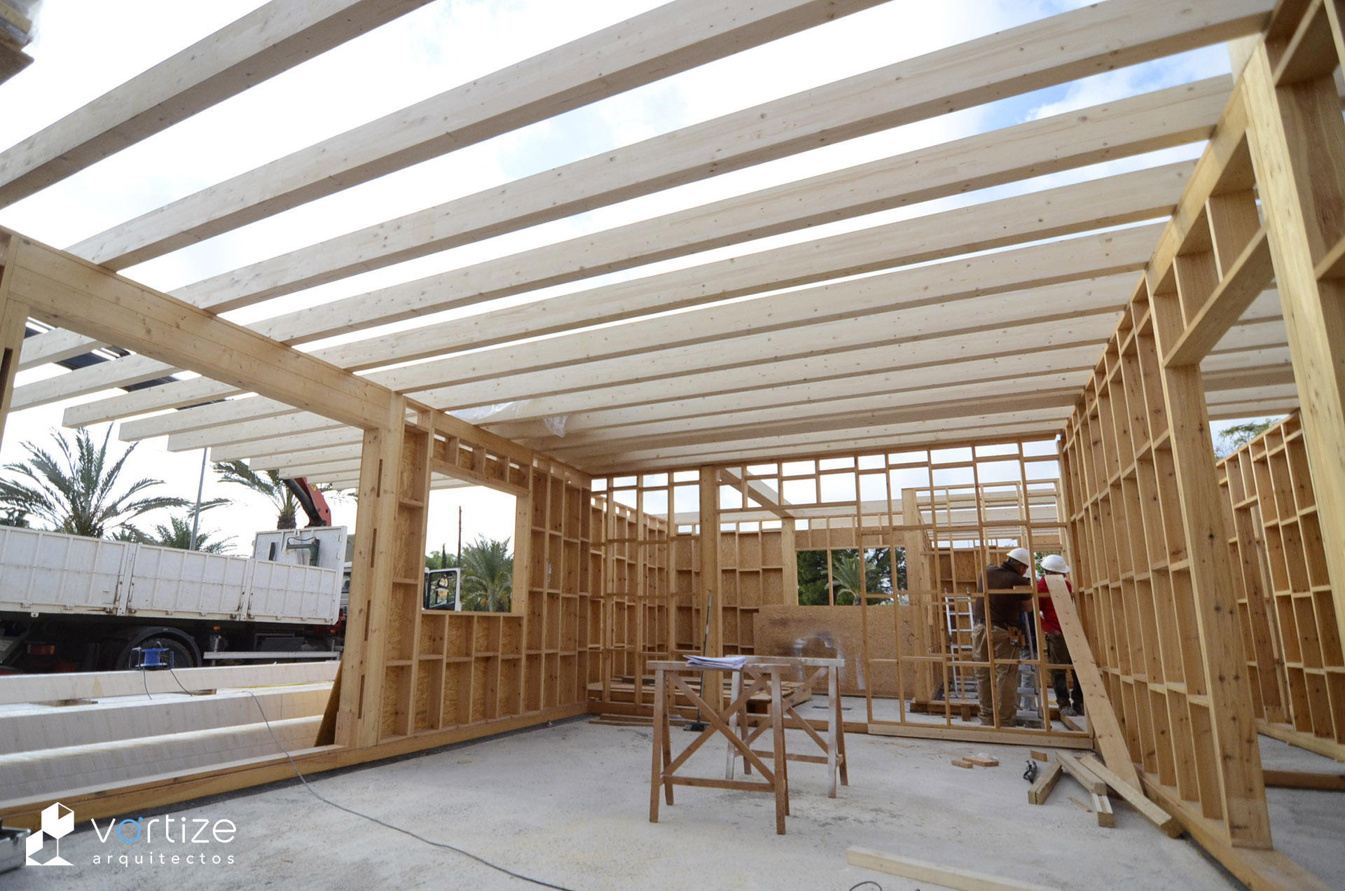 Vivienda Unifamiliar Biopasiva; construida en entramado ligero de madera «Platform Frame» y envolvente de alta eficiencia energética mediante revestimiento exterior SATE de virutas de madera estabilizadas.
